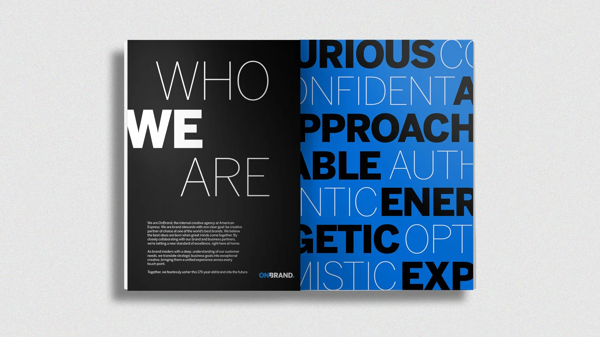 The new identity positions OnBrand as a fully realized creative partner within American Express—aligning how we present ourselves with the scale, ambition, and impact of the work we deliver.